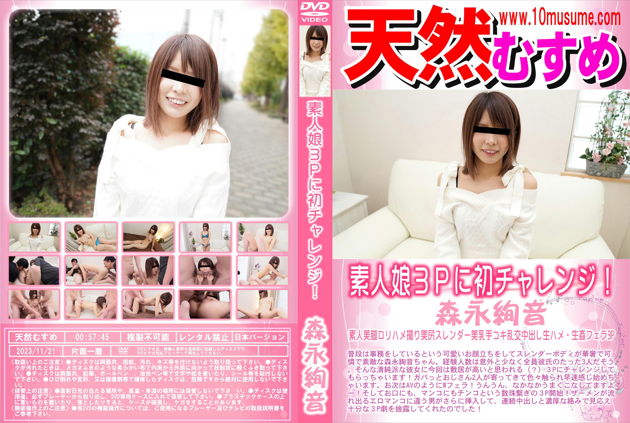 普段は事務をしているという可愛いお顔立ちをしてスレンダーボディが華奢で可憐で素敵な森永絢音ちゃん。経験人数は意外と少なく全員彼氏のたった3人だそう。そんな清純派な彼女に今回は敷居が高いと思われる(?)3Pにチャレンジしてもらっちゃいます!ガバっとおじさん2人が寄ってきて色々触られ早速感じ始めちゃいます。お次はAVのようにWフェラ!うんうん、なかなかうまくこなしてますよー!そしてお口にも、マンコにもチンコという数珠繫ぎの3P開始!ザーメンが流れ出るエロマンコに違う男がさらに挿入して、連続中出しと濃厚な絡みで見応え十分な3P劇を披露してくれたのでした!